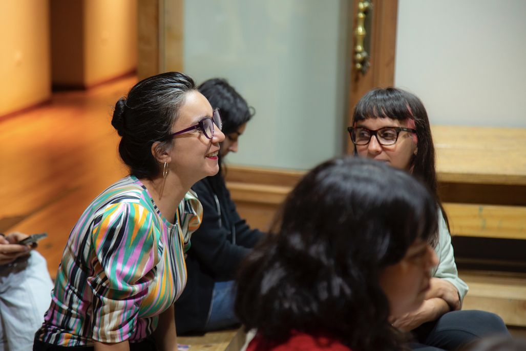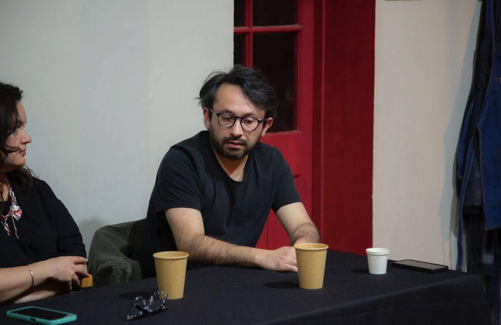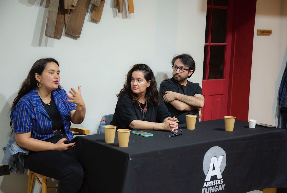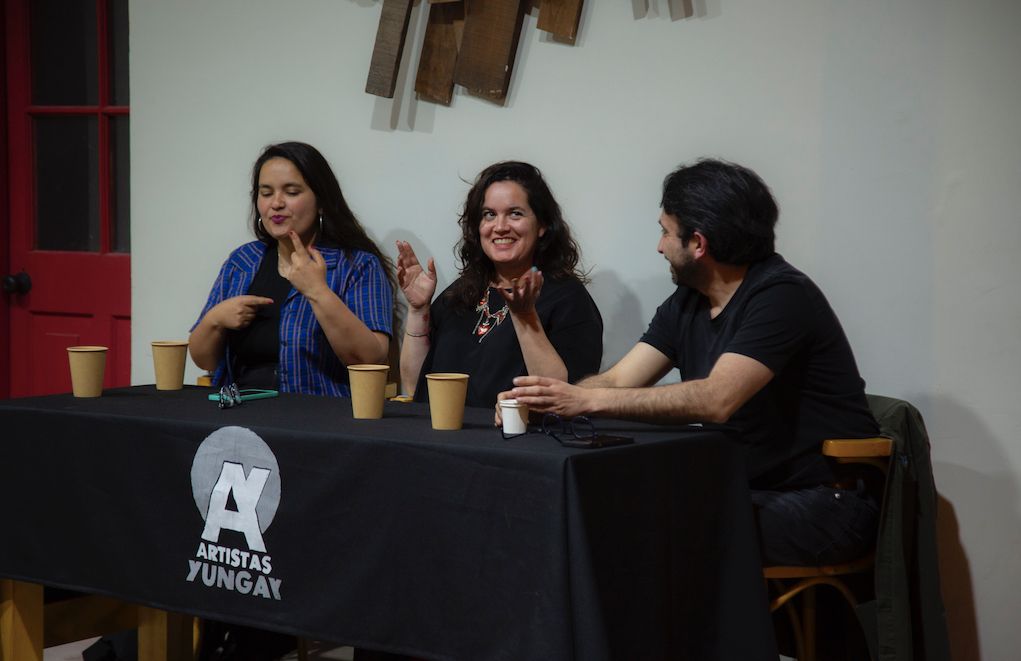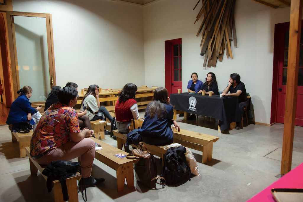 La mesa estuvo conformada por Javiera Manzi como moderadora, Sebastián González Ruiz como artista y Natalia Arcos como teórica de la obra.